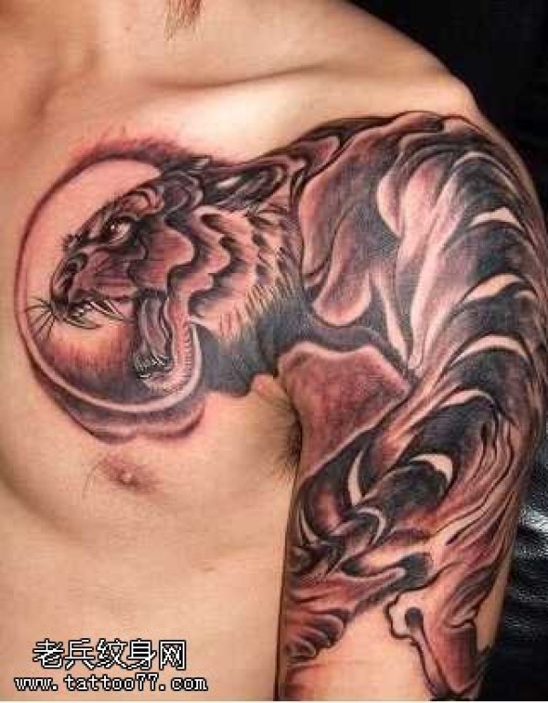 霸气半胛老虎纹身_动物纹身图案大全_纹身图吧