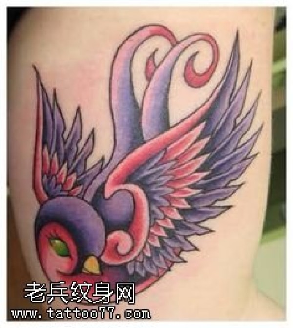 臀部一只鸳鸯纹身图案