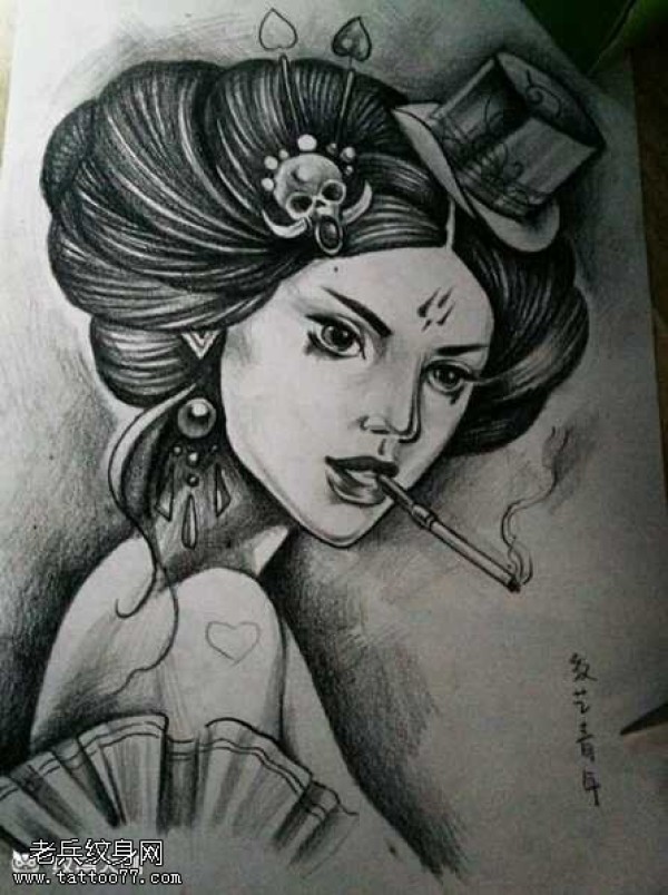 能面万媚纹身手稿_52张日式能剧面具纹身手稿图案素材欣赏