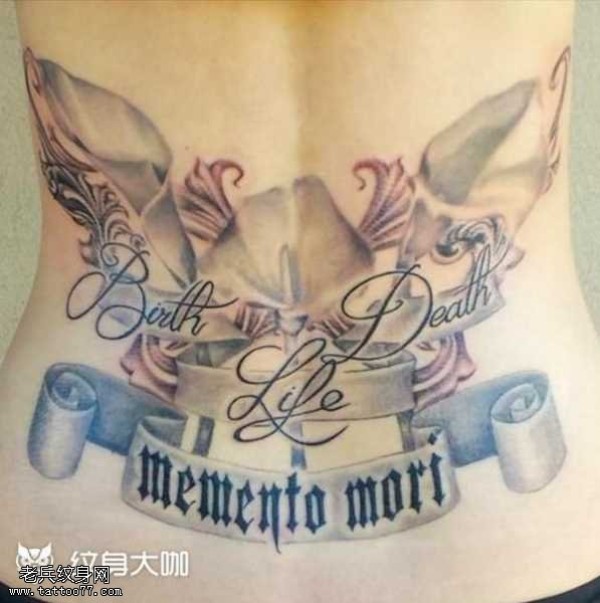 女生后腰纹身黑白灰风格抽象线条纹身图案