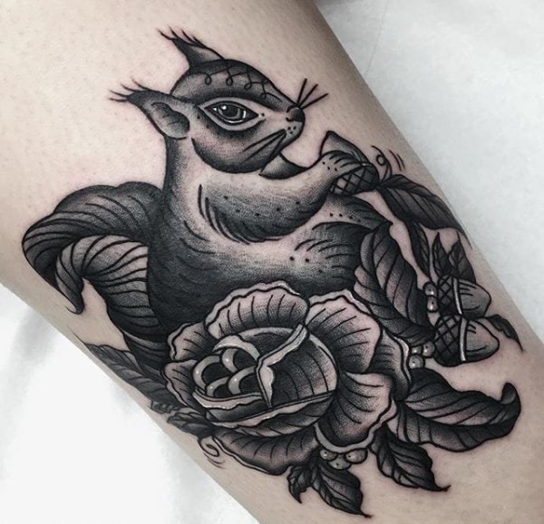 传统的黑灰色的羔羊和茶杯纹身