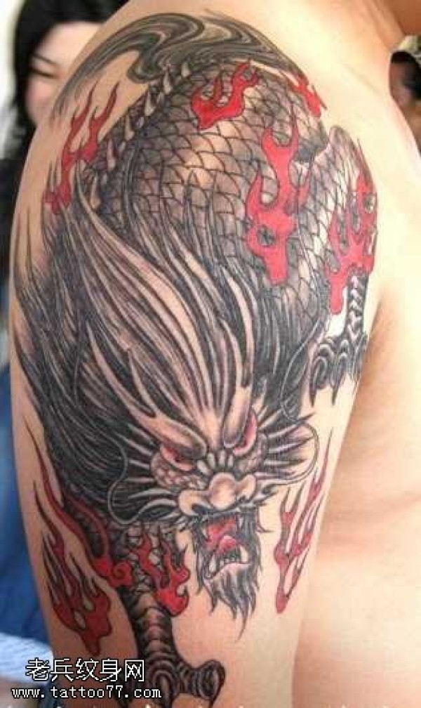 胳膊火麒麟纹身图案