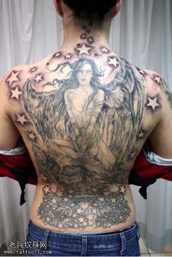 满背炫酷女天使纹身图案
