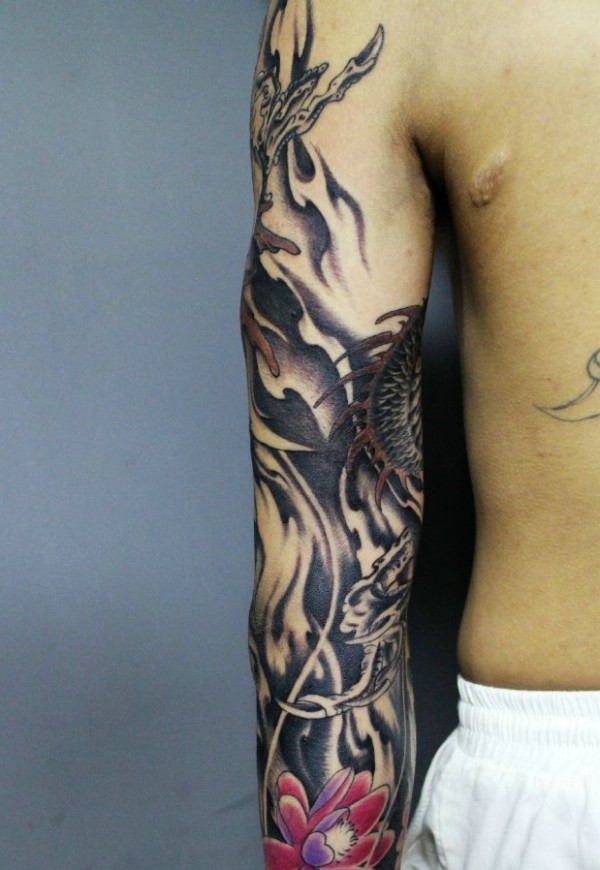 帅气十足的花臂邪龙纹身图案