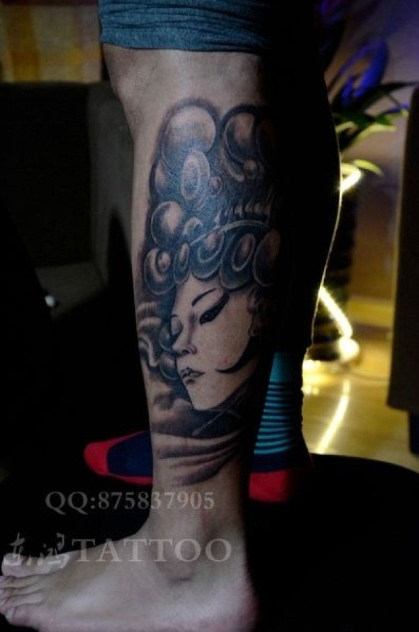 小腿艺妓纹身图案