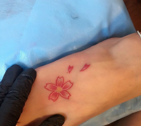 清新小桃花脚踝纹身_脚部纹身图案大全_纹身图吧