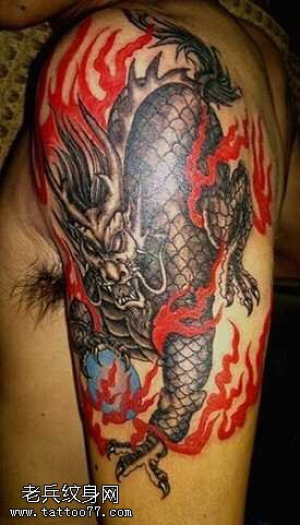 胳膊火麒麟纹身图案