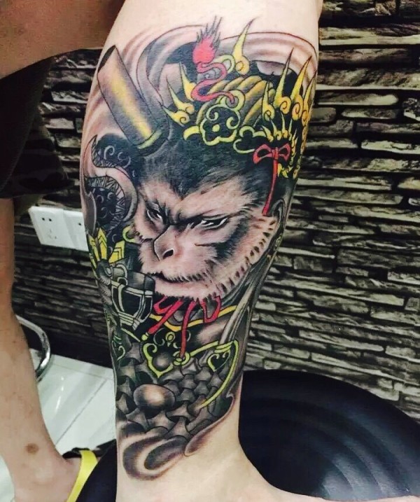 包小腿个性高调的美猴王纹身图案