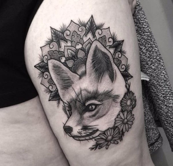 传统花腿纹身--18张传统风格的大花腿纹身图案作品