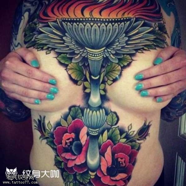 女性大花胸纹身_43张霸气漂亮的女性大花胸纹身图案作品