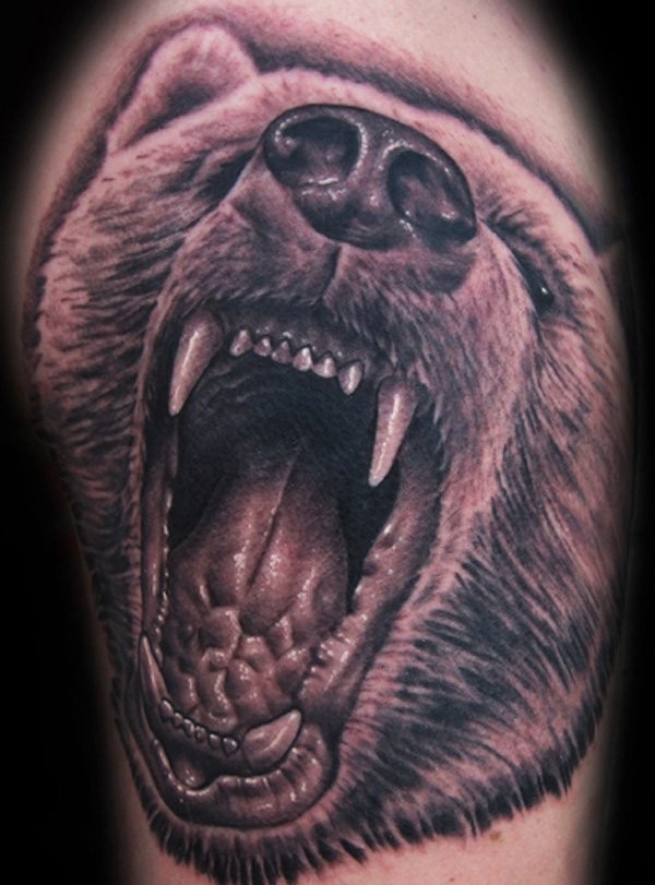 大吼的超真实熊纹身图案