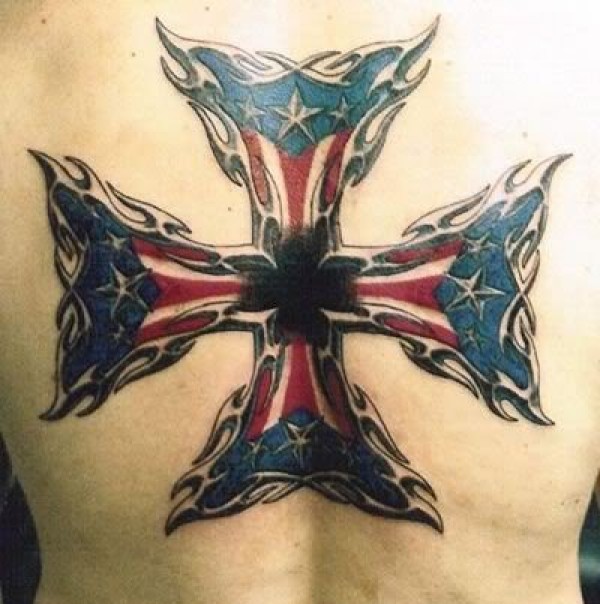 男士背上背着的大十字架纹身图片