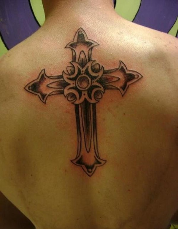 男士背上背着的大十字架纹身图片