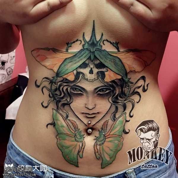 分享一款腰部时尚性感的蝶恋花纹身图案_腰部纹身图案大全_纹身图吧