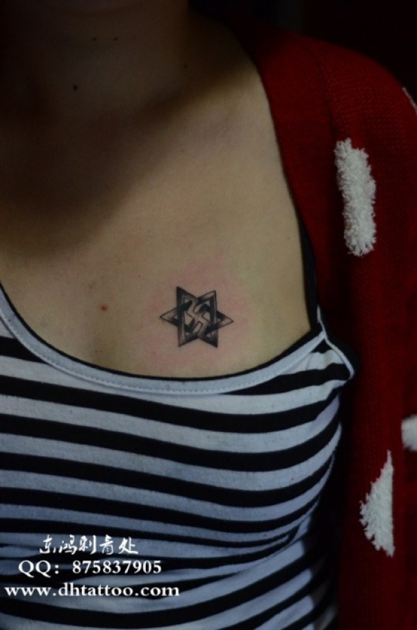 西安纹身店 六芒星纹身 - 黑灰