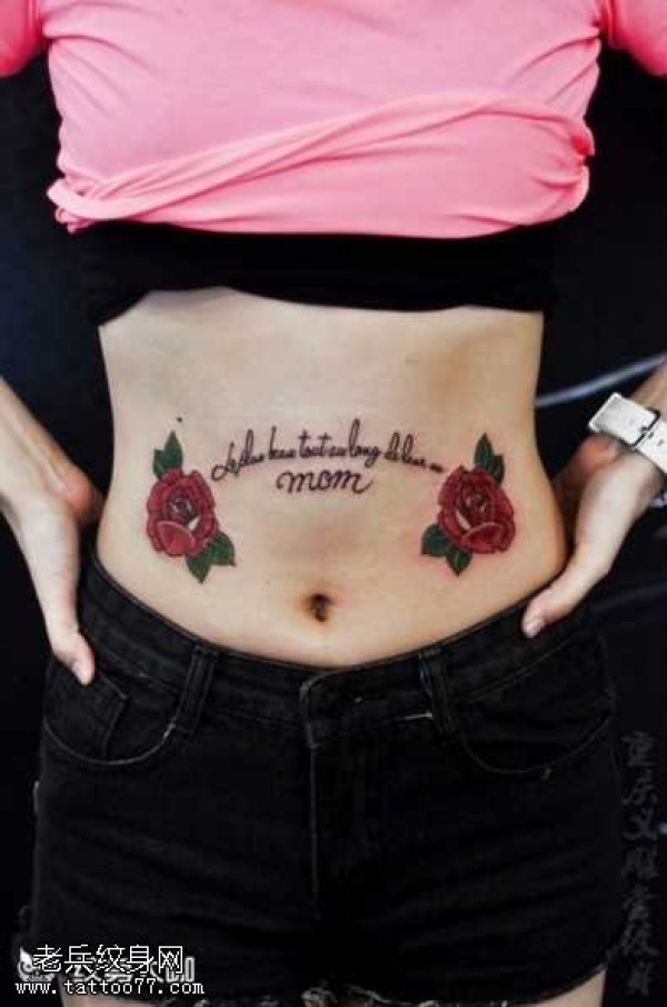 腹部英文玫瑰纹身图案
