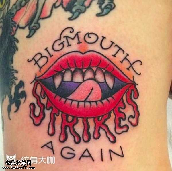 腰部嘴纹身图案