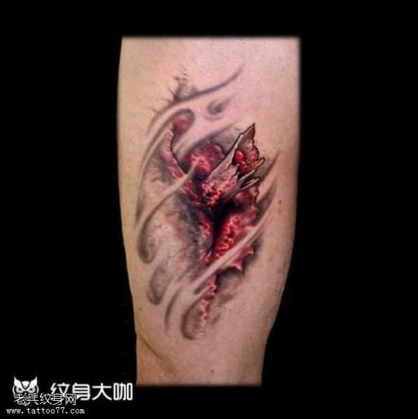 花腿纹身--一组大黑腿纹身图案作品欣赏