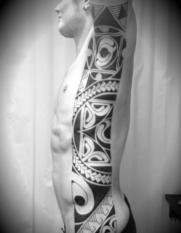 侧肋上的鲨鱼图腾纹身图案