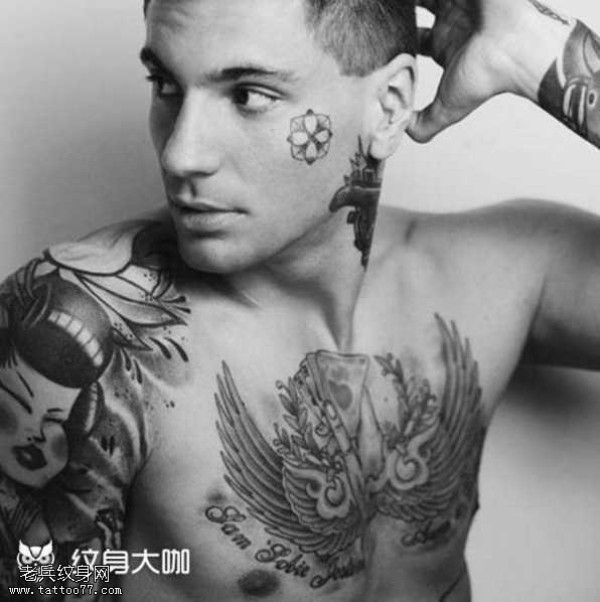纹身图案胸部男 简洁大方的男生胸部纹身图案