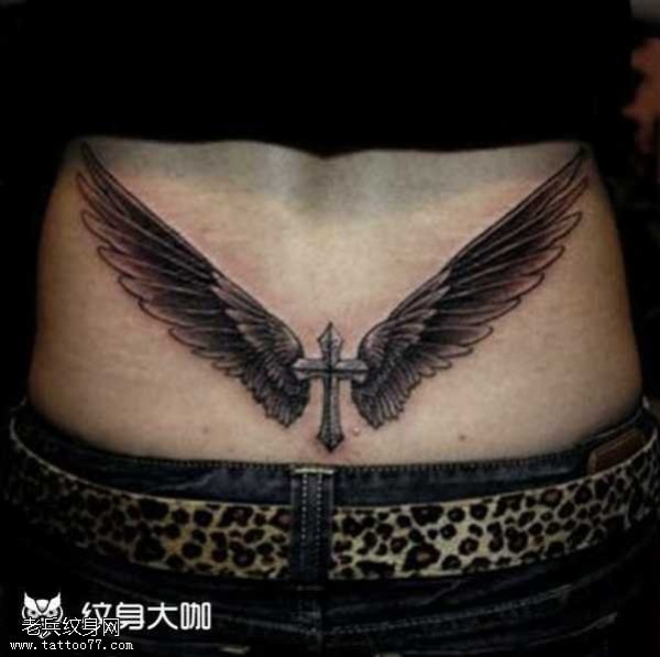 腰部十字翅膀纹身图案