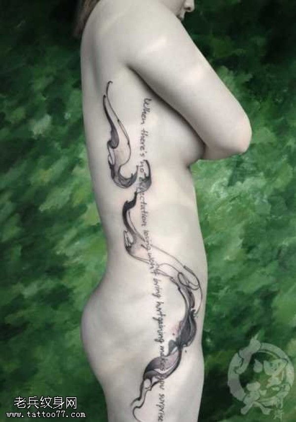 分享一款腰部时尚性感的蝶恋花纹身图案_腰部纹身图案大全_纹身图吧