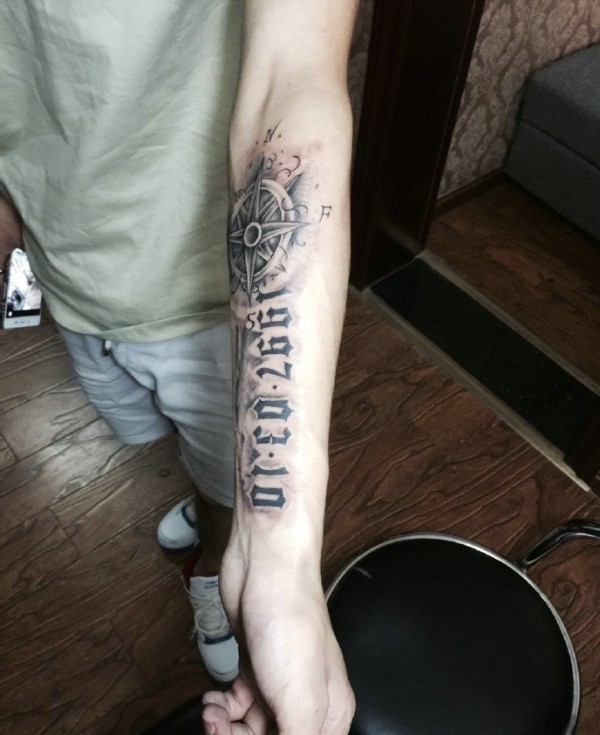 指南针与阿拉伯数字的手臂纹身