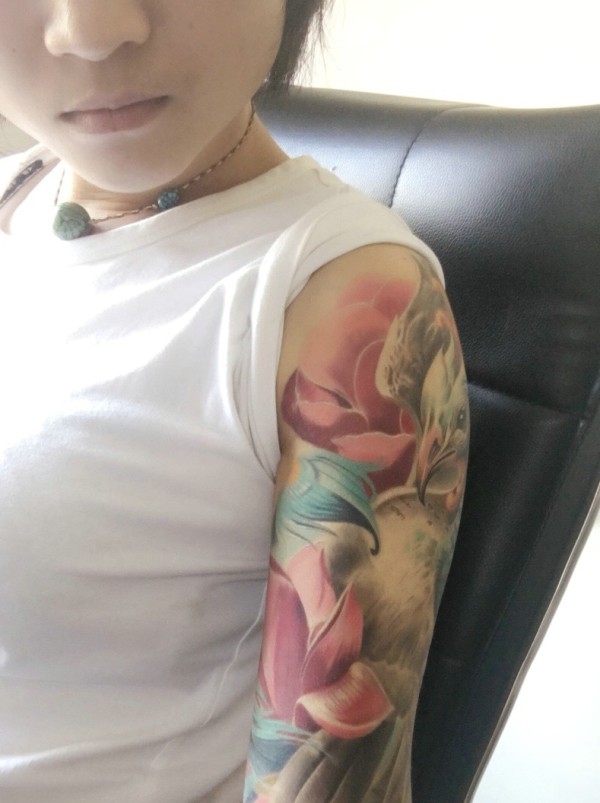白衣女孩的花臂凤凰纹身刺青