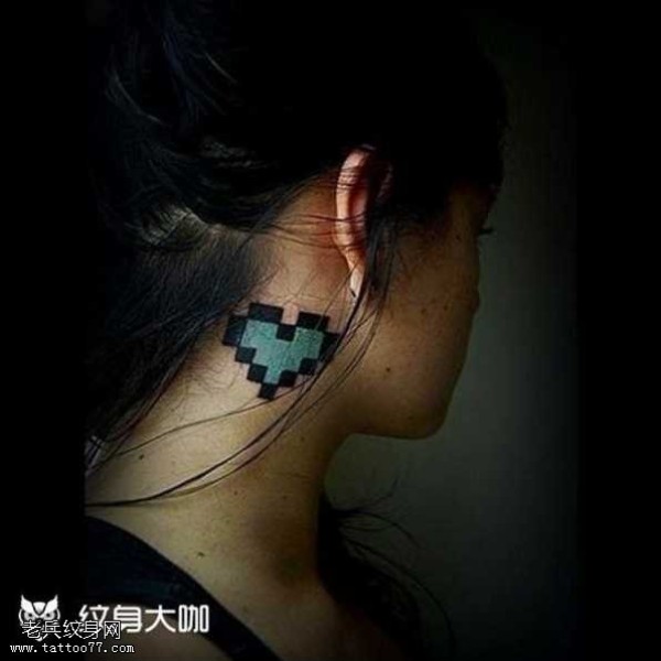 脖子蓝心纹身图案
