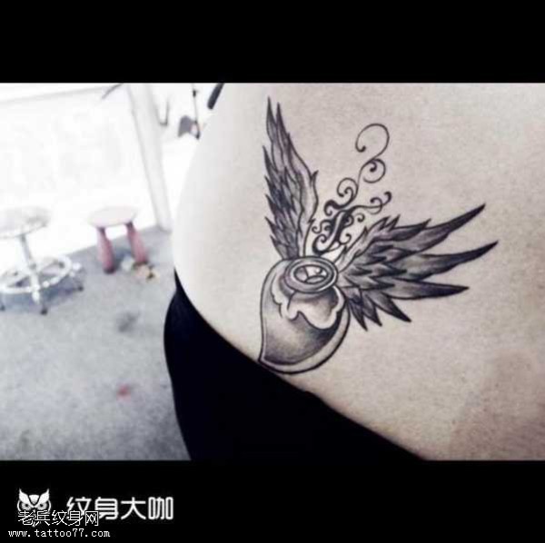 分享一款腰部时尚性感的蝶恋花纹身图案_腰部纹身图案大全_纹身图吧