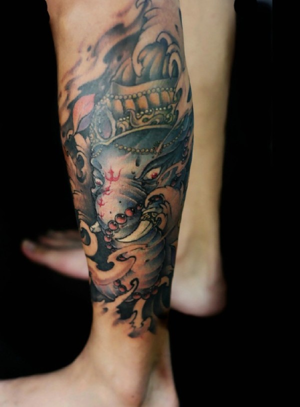 腿部鳌鱼纹身图案_腿部纹身图案大全_纹身图吧