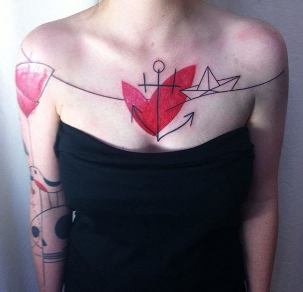 抽象的黑色和红色简单线条纹身图案