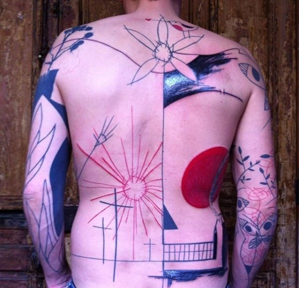 抽象的黑色和红色简单线条纹身图案