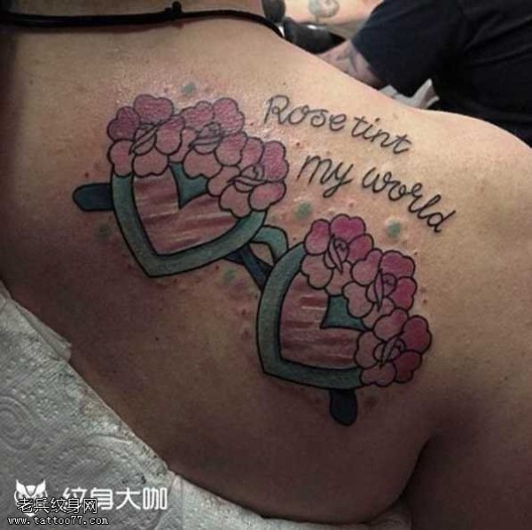 女生肩花纹身_15张女性双肩对称的肩花纹身图案作品图片