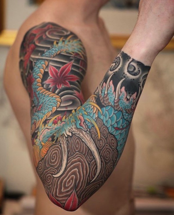 日式手彫刺青作品—半甲龙很感谢客户认可手彫刺青,手彫是日本纹身的手工雕刻技术,时间可以追溯到日本17世纪的江户时代。19世纪,手彫技术被日本黑帮挪用,被用作入会仪式,象征着从此就是江湖中人。在日式传统