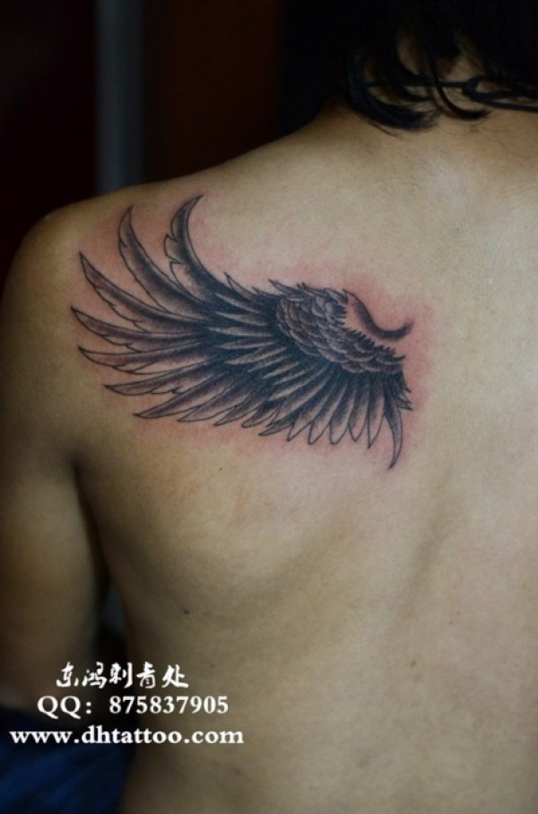 西安纹身店 翅膀纹身 - 黑灰