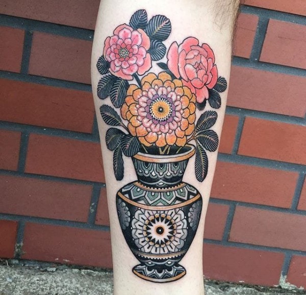 小腿艺妓纹身图案