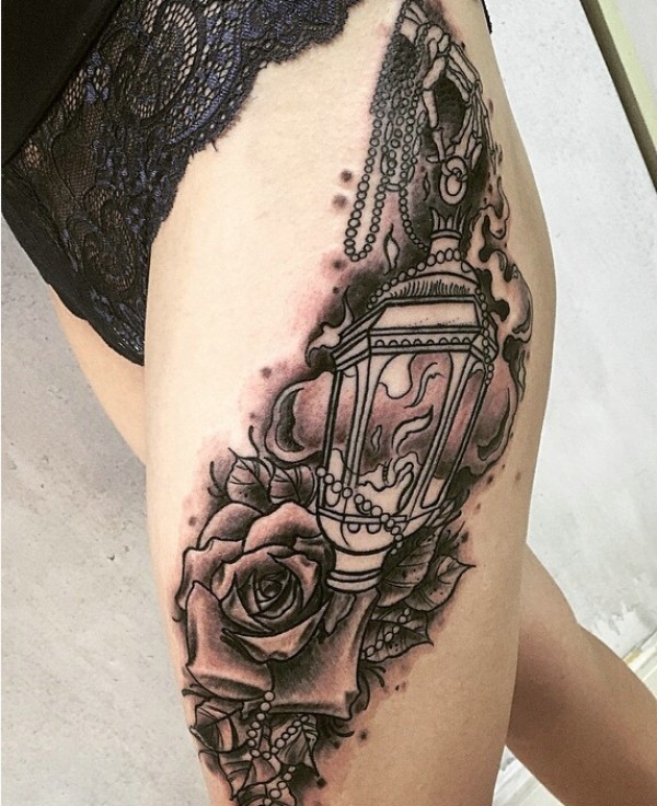 传统花腿纹身--18张传统风格的大花腿纹身图案作品