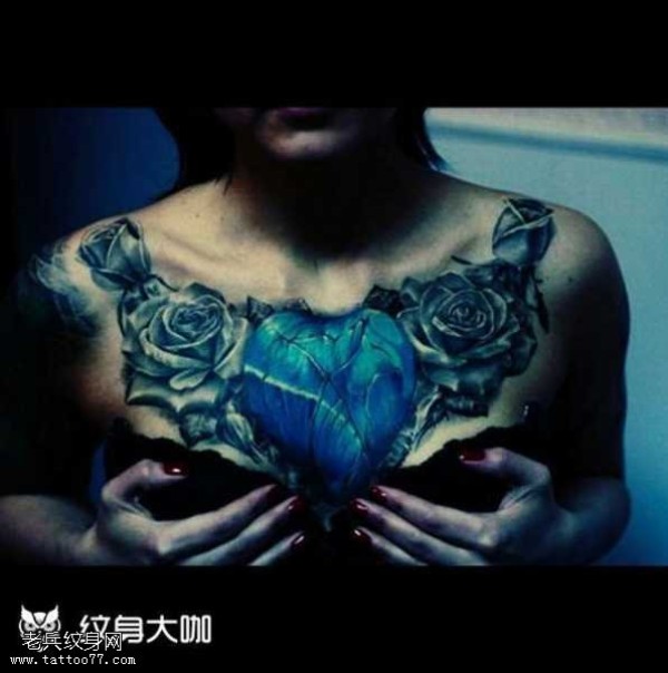 胸部蓝心纹身图案