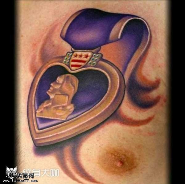 胸部爱心章纹身图案