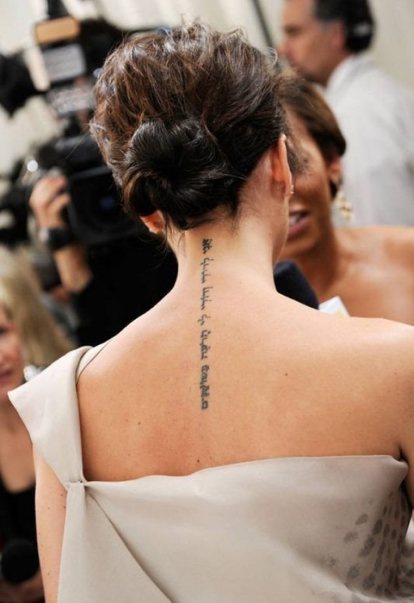 贝嫂维多利亚脊椎骨上的文字纹身图案