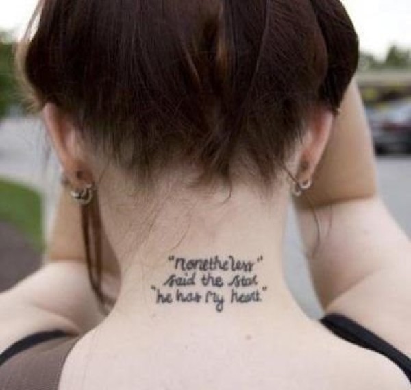 贝嫂维多利亚脊椎骨上的文字纹身图案