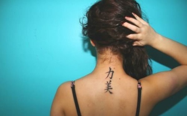 贝嫂维多利亚脊椎骨上的文字纹身图案