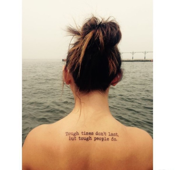 贝嫂维多利亚脊椎骨上的文字纹身图案