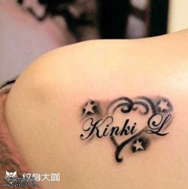 肩部心形英文纹身图案
