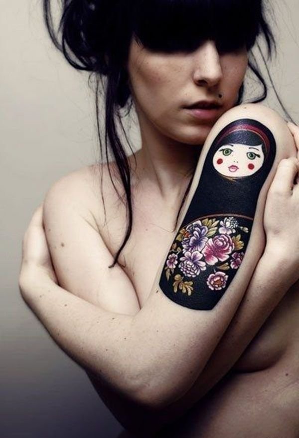 丰满女生花臂人物图案纹身