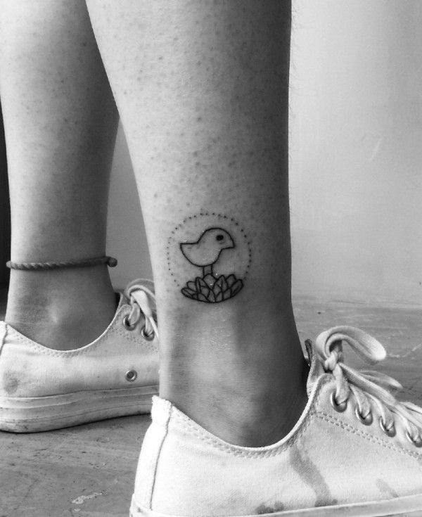 小腿处侧边的迷你小鸟纹身图案