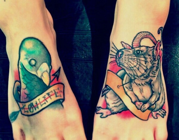 双脚背个性惊艳的动物纹身图案