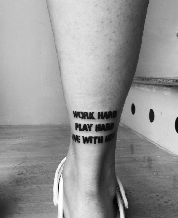 小腿外侧加粗的英文单词纹身刺青