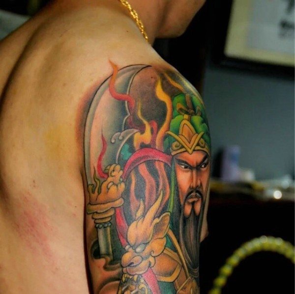 超级霸气的花臂关公纹身图案
